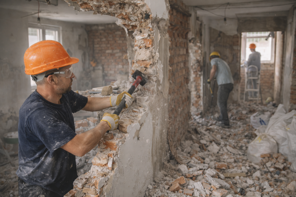Duvar kırımı, fayans sökümü, banyo mutfak söküm, çuvallı moloz taşıma ve iş sonrası detaylı temizlik yapılır.